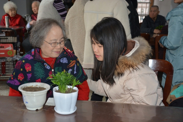 常青藤高雅质朴,薄荷清新怡神,志愿者们精心挑选了一盆盆适合室内种植的绿色植物,同时还带来了绿植的种子,为老人们送来春天的气息。在种花互动环节,志愿者与老人们培土、播种、浇水,一起亲手种植绿植,现场其乐融融。志愿者们耐心地向老人们介绍了植物的养护方法,为老人们写好“备忘录”,叮嘱注意事项。