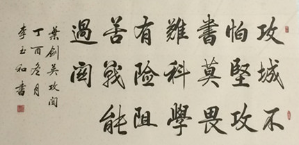 李玉和老师自幼酷爱书法,曾刻苦临摹颜、柳、欧、赵等多种书体,在多年教学科研工作之余,书墨耕耘始终不断,退休后开始学习篆书和启功先生的启体,近年来又习练田氏兄弟(田蕴章和田英章)的欧体。