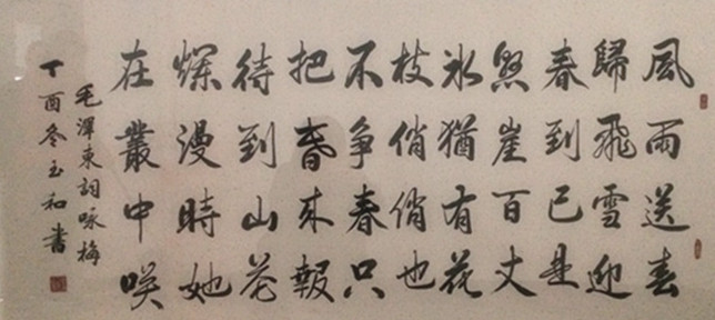 楷书作品分别是毛泽东主席的《卜算子 咏梅》和叶剑英元帅的《攻关》。