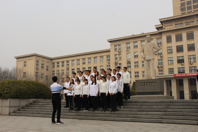 3月23日中午,我院在总理像前开展了一年一度的“五月的鲜花班班唱”活动。学院十余个班级精选曲目,在主楼前尽情放歌。