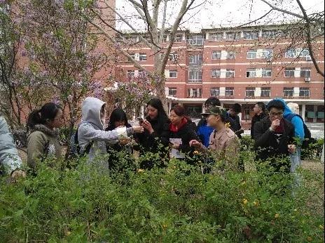 4月6日上午,学院科技协会科技创新部举办了“春花导赏”活动。来自全校各个学院的近30名同学参加了此次活动。迎着料峭的春风,赏花团沿着预先定好的路线:东艺――综合实验楼――谊园――樱花园――二主楼――生科院――敬业广场――中心实验室,观赏了金黄的连翘和金钟,粉嫩的榆叶梅和日本晚樱,雪白的苹果花和梨花,以及紫叶李、美人梅、紫荆……多姿多彩的花草,构成了一幅幅交相辉映,艳丽多彩的春日画境。