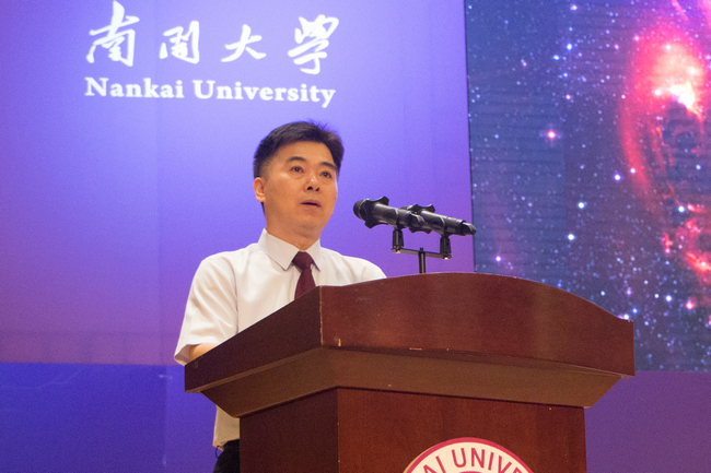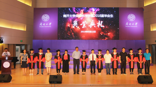 奏唱国歌仪式后,院长孔德领作毕业典礼致辞。孔教授向圆满完成学业的2018届生科院毕业生表示祝贺,并向为生科院人才培养付出辛勤汗水的全体教职员工表示感谢。他希望毕业生保持积极向上的生活态度,常怀感恩之心,做勇于开拓的创新者。他表示,母校南开永远是同学们的坚强后盾,希望大家走出校园后在广阔天地中尽情施展才能,以南开人的优秀品格和过硬本领为祖国建设贡献力量。