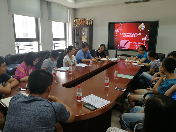 7月26日,生命科学学党委组织召开宣传工作总结暨表彰会议,学院宣传工作小组的成员参加了会议,学院党委书记田冲出席,副书记、副院长李营主持。