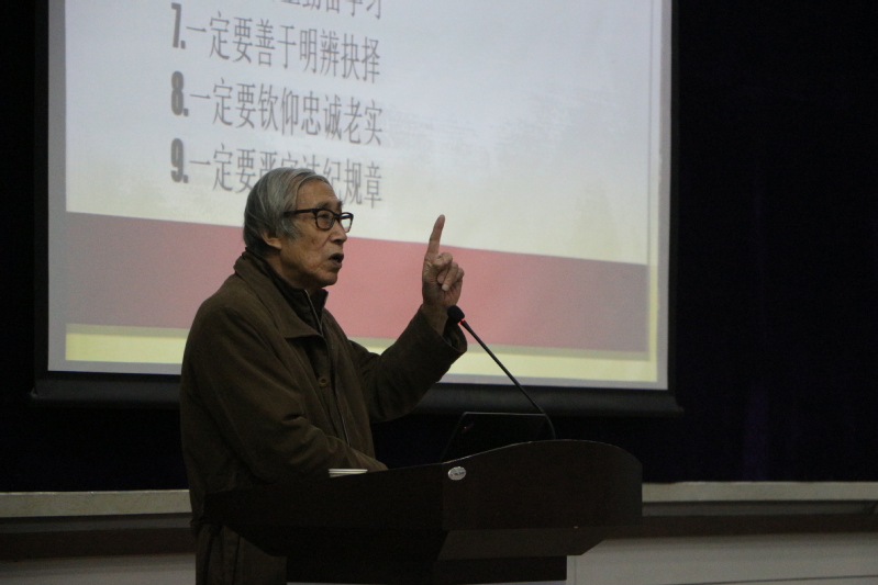 王辅成从坚定理想信念、练就过硬本领、勇于创新创造、失志艰苦奋斗、锤炼高尚品格、终生勤奋学习、善于明辨决择、钦仰忠诚老实、严守法纪规章等九个方面深入解读了时代新人的使命与担当。他强调,广大青年要增强紧迫感,实现忧患意识与担当精神的有机结合,充分阐释了时代新人的特征与如何成为时代新人的深层思考,为师生带来了一堂生动详实的教育课。