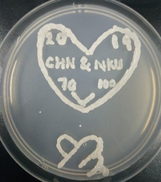经过前期的创意设计,支部选取了校徽、校训和主楼等具有南开特色的图案进行了微生物平板作画,同时设计了一些图案来表达南开学子对中华人民共和国成立70周年的祝贺和南开学子科研为国、科技强国的爱国之心。