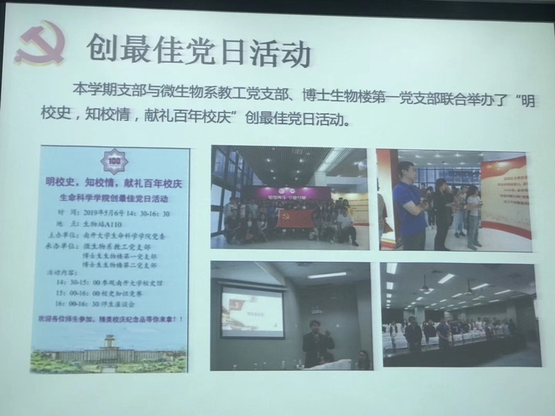 会上,学生党支部以ppt展示的方式汇报了本学期的主要工作情况、存在问题和下学期的工作计划。各支部围绕主题,重点汇报了“党建1+1计划”的落实和执行情况,图文并茂,内容充实,严格落实“三会一课”制度,保证了“两学一做”学习教育活动常态化、制度化。其中四个2018级硕士党支部与四个文科学院党支部的共建活动,六个博士生党支部与教工支部的共建活动,有效地调动了党员参与支部活动的积极性,都得到了党员同志的高度好评。