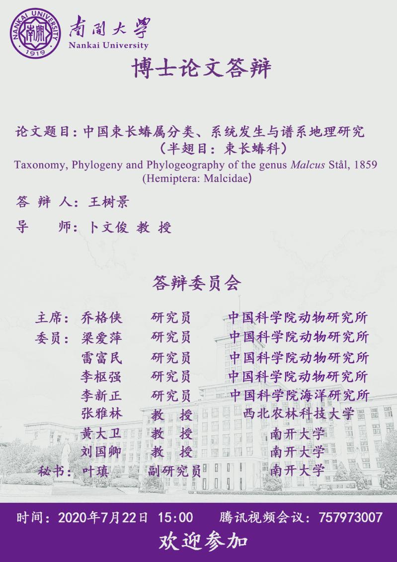 王树景同学博士论文线上答辩公告