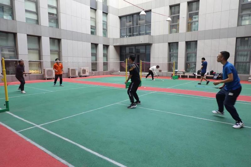陈佺院长为各位出资人和老师颁发致谢铭牌后,吉泰依科赛生物科技有限公司董事长陈旭为“院长杯”羽毛球赛开球,本届“院长杯”羽毛球友谊赛正式开始。