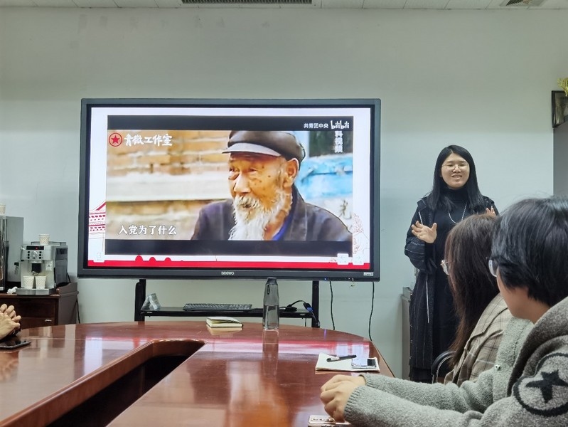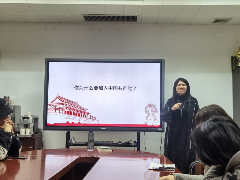 在播放由共青团中央发布的的献礼建党99周年的宣传片之前,队长李雪桐向大家提出了“你为什么要入党?”这个问题,并希望大家能自主思考。宣传片中各位老党员讲述了加入中国共产党的动机。观看完影片后,各位队员深受感动,并就自己的观影体会展开讨论。姜世举表达了对有信仰、有信念的同志的敬佩之情。苏晓峰希望各位队员能够主动地通过多种途径了解党史,学习与党相关的理论,进而端正自己的入党动机。高进提到,实践证明坚持中国共产党的领导是正确的,正是中国共产党的领导中国才会发生翻天覆地的变化。李雪桐表示,中国共产党是具有先进性的,它带领中国人民探索出了符合中国国情的社会主义道路。