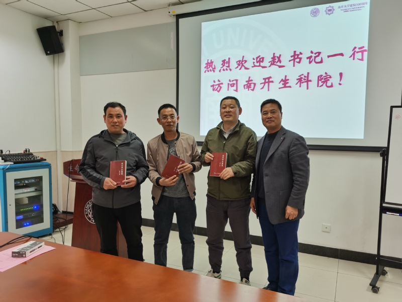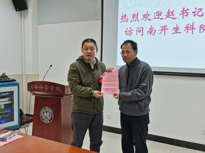 会上,双方初步达成合作协议,学院党委向黑崖沟村支部赠送了石福臣创作的《南开草木集》书籍。黑崖沟村党支部向学院赠送感谢信,感谢阮维斌教授带领团队在黑崖沟村开展的“以虫治虫”项目,在短时间内有效控制了虫害,帮助村民挽回了经济损失。