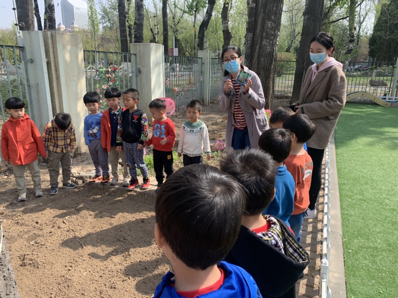 “有没有小朋友知道一粒种子怎样能生长为我们餐桌上美味的蔬菜?”“我们应该多久给植物浇一次水?”“如果菜叶上出现了害虫咬过的痕迹该怎么办?”一个个问题的抛出,激发起了小朋友们的兴趣,他们积极思考,踊跃回答。随后,在科学的引导下,孩子们一起讨论、分组合作,认真播撒下一颗颗种子。课后,老师还布置了观察作业,希望孩子们能够感悟生命的神奇,探索大自然的奥秘。