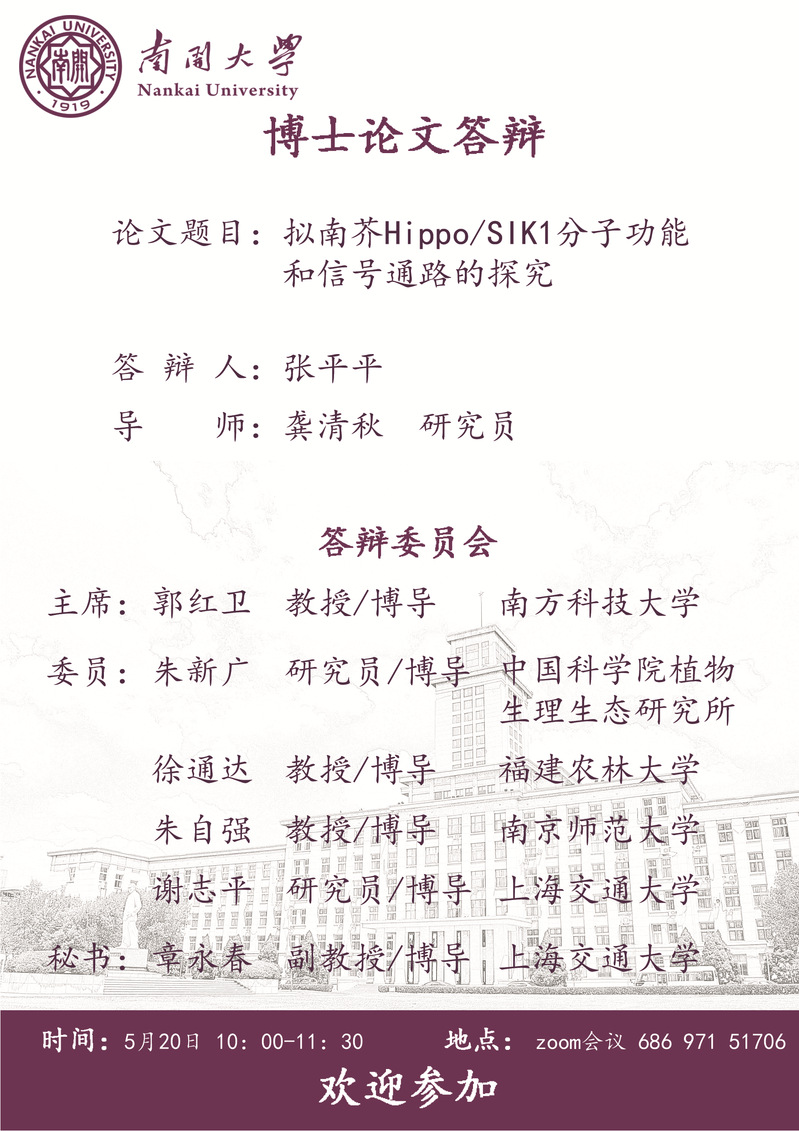 yl7703永利集团博士研究生(张平平)毕业论文线上答辩公告