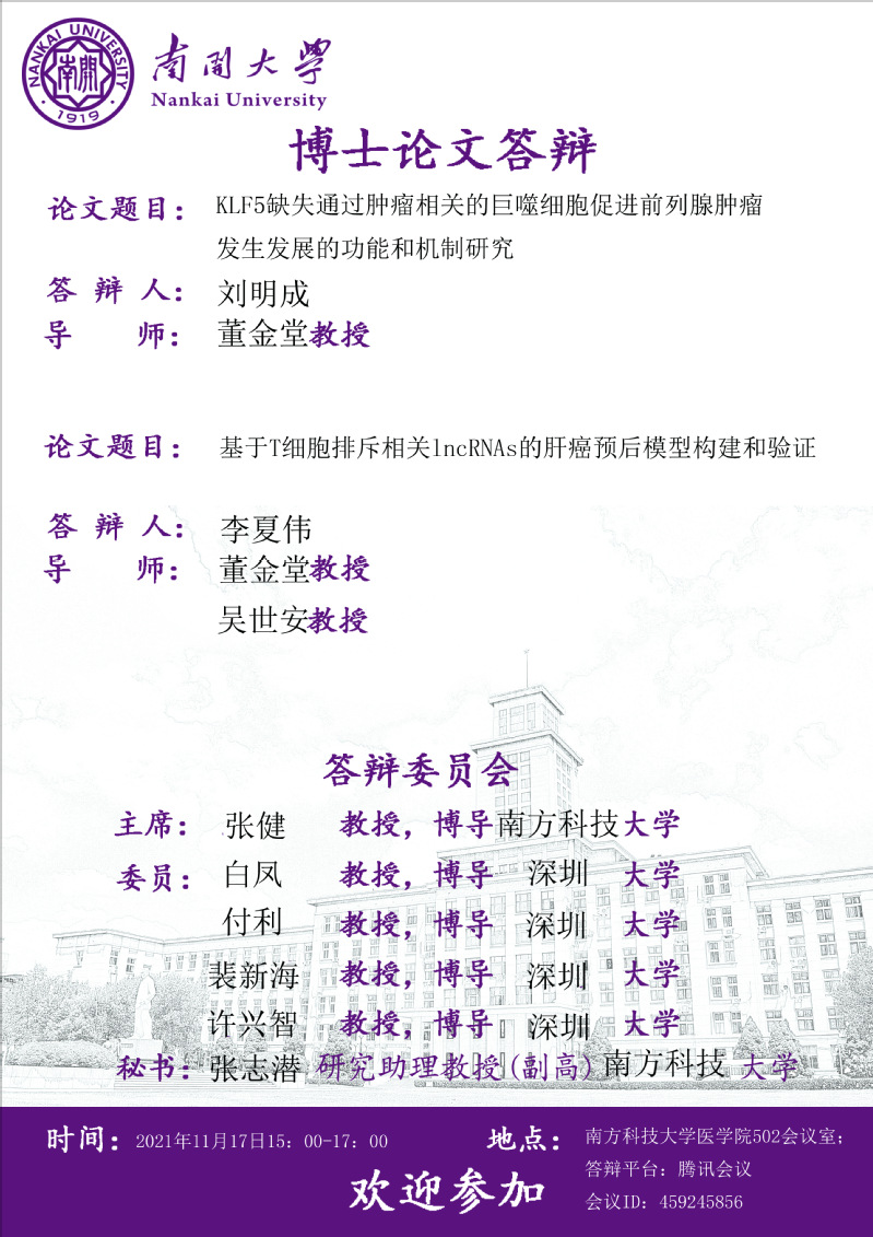 yl7703永利集团博士研究生(李夏伟、刘明成)毕业论文线上答辩公告