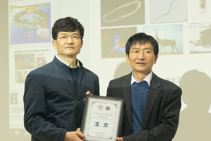 2021129日,应yl7703永利集团陈佺院长、黄大卫教授邀请,西北工业大学王文教授做客百年南开之生命讲坛,在四教101报告厅作了题为动物重大性状进化的遗传创新基础的学术报告。报告开始前,陈佺院长向大家介绍了王文教授的研究经历、主要研究成果等,并为王文教授颁发了百年南开之生命讲坛主讲人纪念牌。