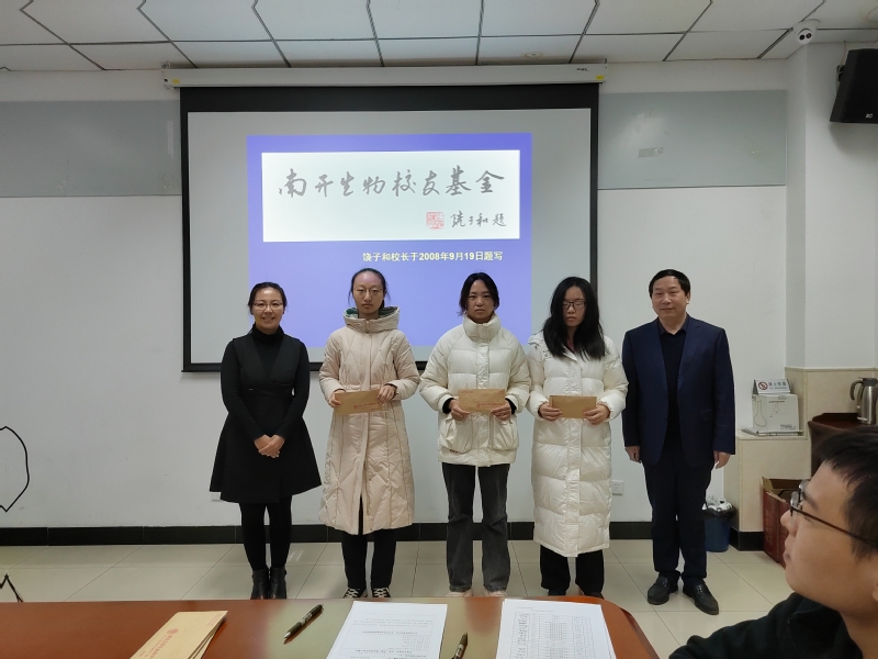 12月12日,生科院在生物站会议室组织召开《南开生物校友基金》颁发仪式,校友代表刘凤岐博士、党委副书记王兰及2020级、2021级受助学生参加仪式并座谈交流。