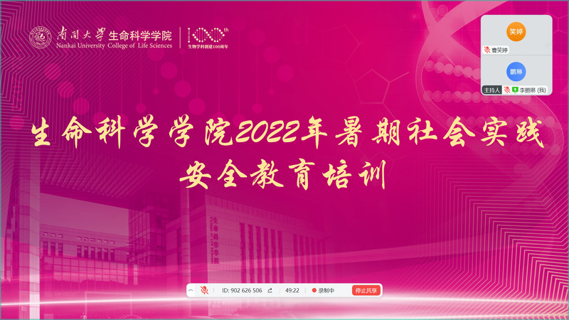 7月2日下午,yl7703永利集团开展2022年暑期社会实践安全教育培训会,主讲人为生科院团委青年志愿服务与社会实践中心指导教师李鹏琳,所有暑期社会实践成员参与培训。