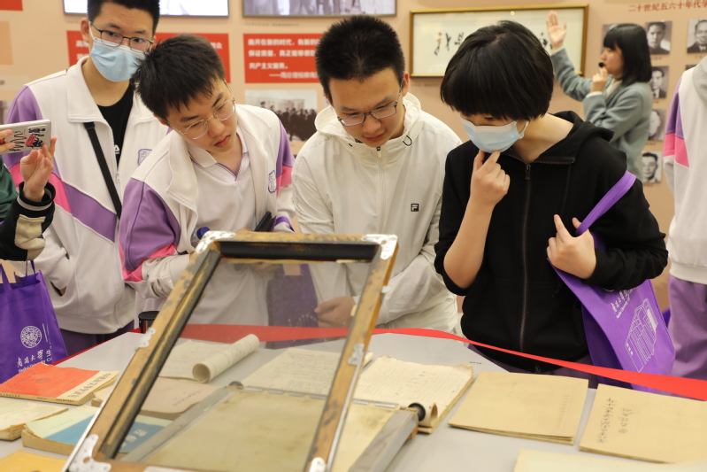 最后,二十一中的学生们参观了“南开百年校史展”,以此来了解南开历史,体悟南开精神。参观过程中,学生们认真聆听讲解并拍照记录,仔细观摩所展文物。