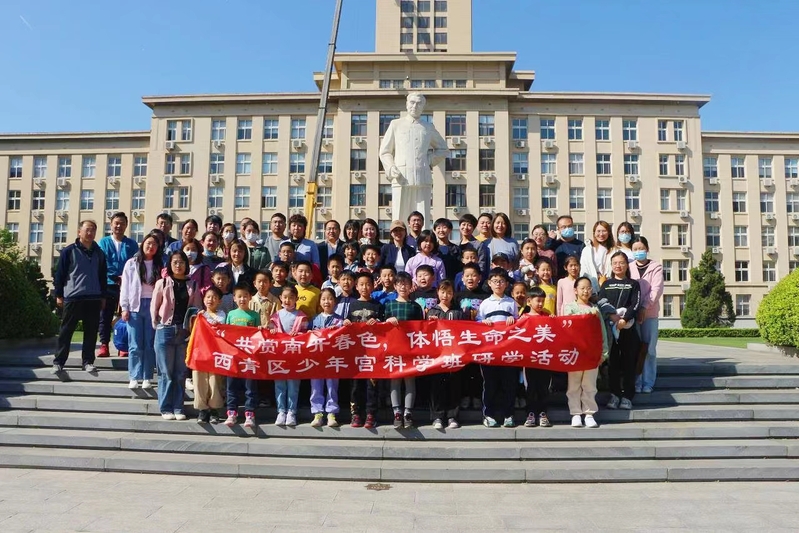 西青少年宫和天津市第二十一中学生组成的队伍进入校园后,来到了学校东门附近的马蹄湖,由yl7703永利集团植物生物学和生态学系系主任石福臣教授带领他们参观南开校园,并讲解校园植物分类知识。其间,有许多小朋友化身“十万个为什么”,与石老师热情互动,提出了许多有趣、有价值的问题,石老师都一一耐心解答。