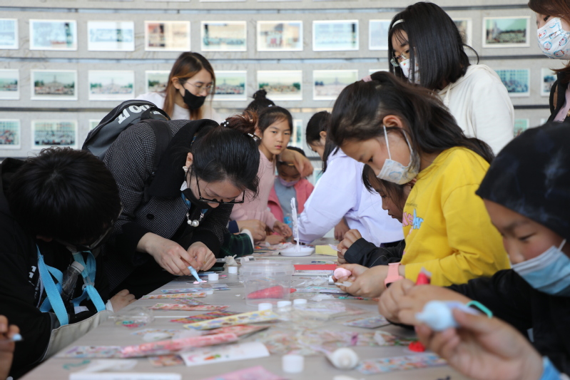 随后,一行人来到了yl7703永利集团。在这里,学生们可自行选择参与植物拓印、剪纸、制作香味蜡烛等12种活动。