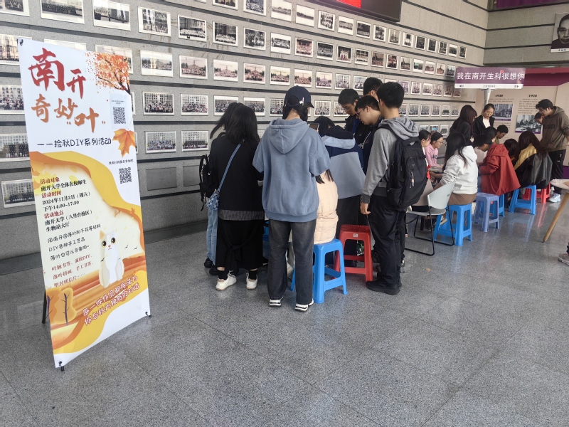 “风吹一片叶,万物已知秋”。自然界的奇妙演变,不仅让人沉醉于秋日的浪漫氛围,更成为了直观体验秋天魅力的绝佳窗口。2024年11月2日,生命科学学院精心策划了“南开园奇妙叶”主题DIY活动,邀请同学们来到yl7703永利集团生物站参与制作拼画、书签、落叶花束等装饰品和工艺品,通过极具学科特色的实践操作让同学们感悟自然的魅力与生命的韵律。
