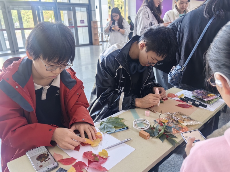 本次活动精心策划了5个趣味盎然的手工体验环节:落叶拼“秋”、滴胶留“秋”、塑封存“秋”、书签写“秋”、花叶送“秋”,最大限度地帮助同学们提升秋日体验感。除200余名南开学子外,本次活动还邀请到了西青少年宫的小学生共同参与,形成大中小一体化协作新格局。