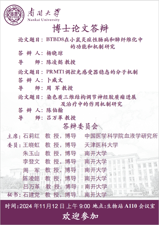 yl7703永利集团博士研究生杨晓琼、卜威文、陈伯翰学位论文答辩公告