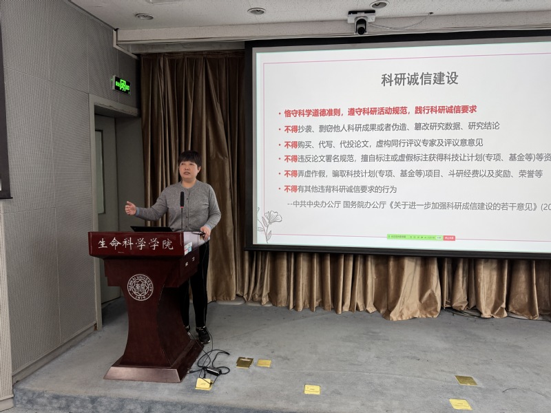 学院副院长李登文教授结合学科特点聚焦学术诚信进行宣讲,明确指出抄袭、剽窃、弄虚作假等行为违反科研诚信和相关校纪校规,她强调:科学研究需秉持严谨的态度,设置严格对照,保证结果可重复且保留原始数据。只有这样,研究成果才能经得起检验。此外,李登文建议同学们要保持对所从事工作的热情,以积极的心态开展研究工作。她指出:科学研究是探索自然界客观规律的过程,研究人员需秉持诚实守信、严谨求实的态度,具备质疑精神和批判性思维,开放交流与合作,推动科学进步与发展。