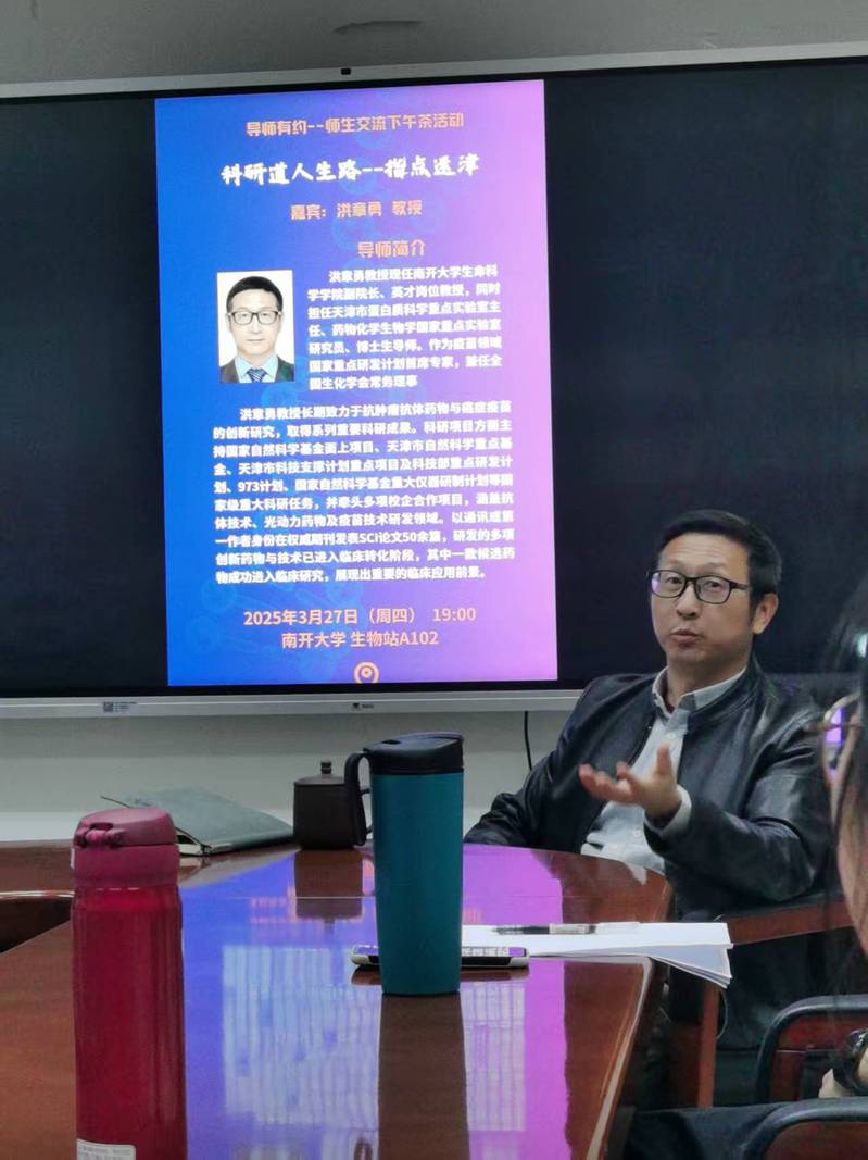 3月27日,yl7703永利集团“导师有约——师生交流下午茶”活动在生物站A102会议室举办。yl7703永利集团洪章勇教授做客本次活动,带来主题为“科研道人生路——指点迷津”的分享,就科研道路选择与人生成长规划与同学们进行交流探讨。