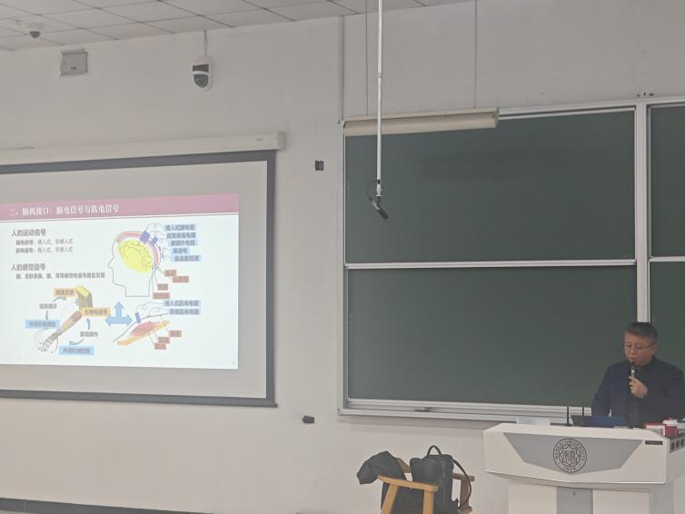 互动交流环节,同学们围绕技术研发难点、产业转化路径等问题踊跃提问,段峰教授结合自身研究实践逐一细致解答,思维碰撞让课堂氛围愈发热烈。PPT中清晰呈现的技术原理与应用案例,与教授深入浅出的讲解相互印证,让抽象的前沿科技变得可知可感。本次课程的成功举办,不仅让同学们系统了解了脑机接口等前沿技术的核心知识,更激发了大家对跨学科科研的探索热情与创新意识。
