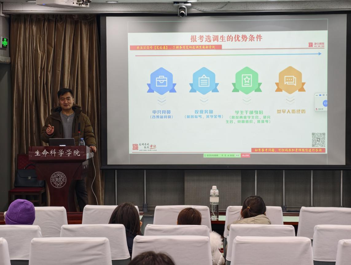 为帮助2027届毕业生精准把握公务员及选调生考试的最新政策,科学规划备考路径,我院于近日联合津仕教育成功举办“2027选调生公务员政策解读及备考指导”专题讲座。津仕教育王建群老师受邀主讲,通过公务员考试类型、各省定向选调最新政策等为广大学子建立起对公考体系的宏观认知,助力明晰备考方向。