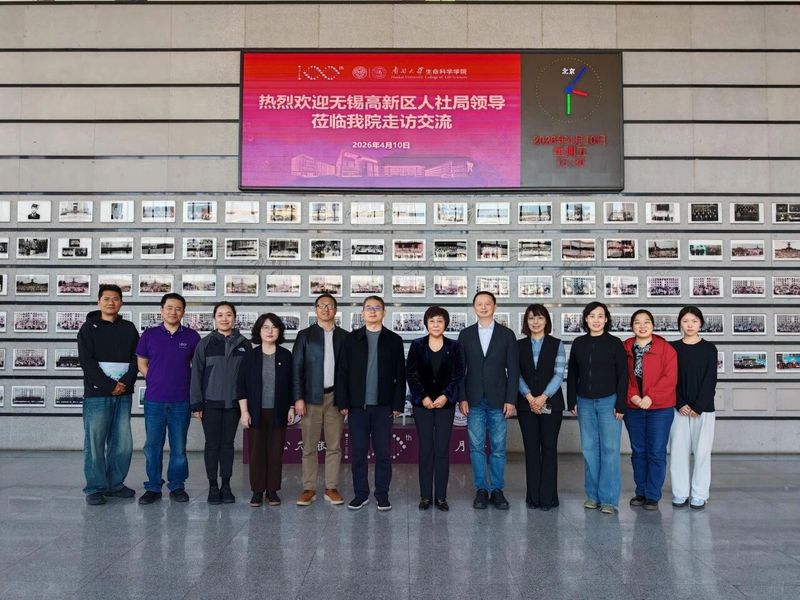 为深化校地产学研融合,推动人才供需精准对接,助力生命健康领域人才培养与产业发展同频共振,2026 年 4 月 10 日,无锡高新区人社局党组书记、局长孙昊带队到访yl7703永利集团,无锡高新区人社局党组成员、副局长张轶,区人力资源管理服务中心主任储霞、副主任王秋晨,高新人才集团董事长严茵,高新人才管理咨询有限公司总监陈敏一同参与调研。yl7703永利集团党委书记谢桂玲,党委副书记、副院长王兰,副院长洪章勇,教学培养办公室主任刘姣,双一流建设办公室主任杨哲,辅导员田晖在生物站A110会议室接待考察团一行,双方开展产学研人才合作座谈,共商校地合作新路径,探索生物医药产业人才发展新方向。