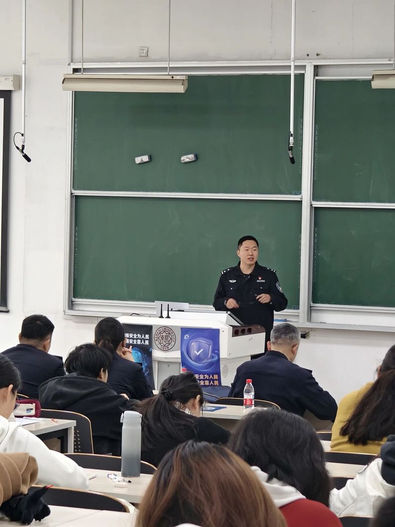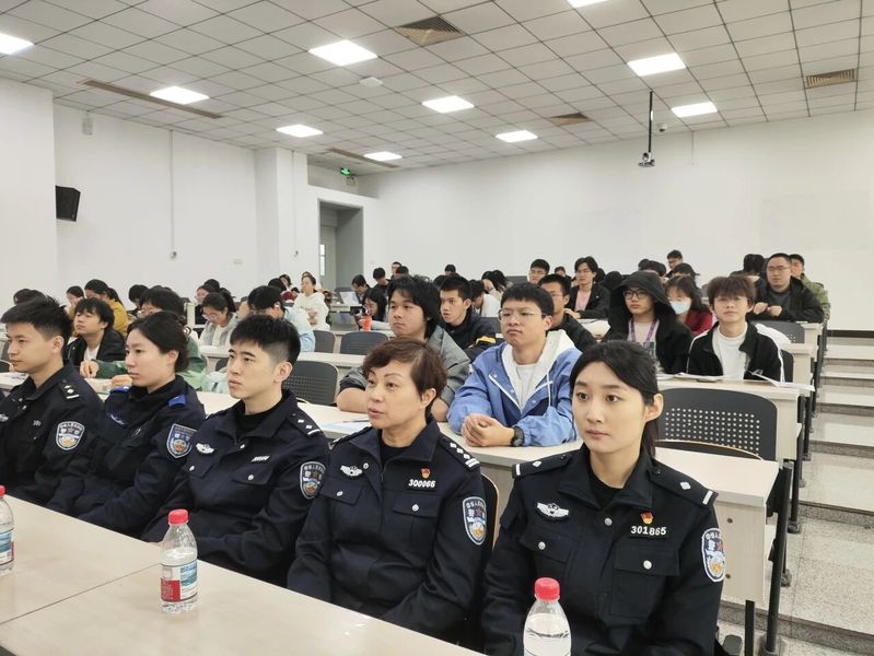 赵通则紧扣国家反诈工作部署,围绕“大学生电信诈骗防范”主题展开讲解。他重点梳理了刷单返利、情感投资等常见诈骗类型,并通过还原真实诈骗案例的完整链条详细拆解诈骗套路。赵通警官明确了“三不一多”反诈核心原则,同时科普了遭遇诈骗后的紧急止付流程、求助渠道等,帮助同学们掌握实用反诈技巧,提升防范电信网络诈骗的能力。