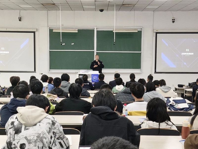 随后,刘昊立足国家网络安全政策导向,围绕“新时代互联网网络安全”这一重要议题,从互联网发展趋势、网络现状与隐患、AI与新业态发展以及个人信息保护四个方面展开讲解。刘昊结合快手平台黑客入侵等真实案例,解读了AI技术带来的新的安全风险,向同学们科普了AI换脸诈骗等新型网络隐患。同时,针对大学生个人信息暴露场景多、防范意识薄弱的特点,刘昊围绕《网络安全法》《个人信息保护法》等相关规定,教会同学们如何保护个人信息,防止个人信息的泄露和滥用。