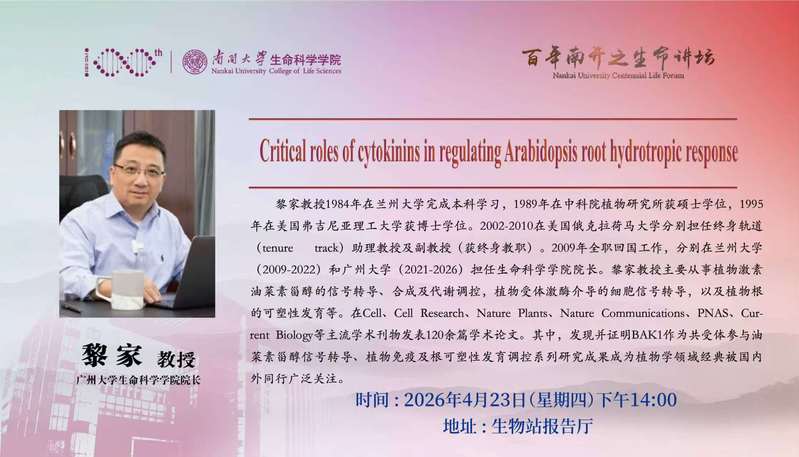 4.23 14:00 百年南开之生命讲坛-黎家
