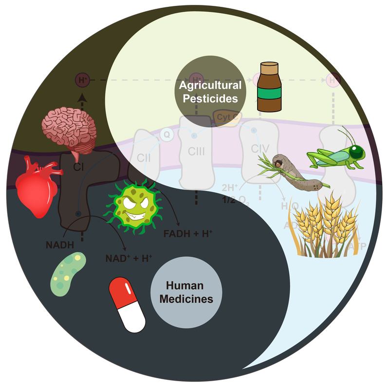 所有生命活动均依赖能量(ATP,腺苷三磷酸)驱动。呼吸作用作为一种普遍存在于生命体中的能量代谢过程,在需氧细胞中,糖类、脂肪和蛋白质在氧化分解过程中释放电子和质子。在真核生物的线粒体内膜或原核生物的细胞质膜上,这些电子通过一系列电子传递载体最终传递给氧,形成水,同时建立跨膜质子梯度。这些电子载体按特定顺序排列,构成从供氢体到氧气的电子传递链,亦称呼吸链。电子传递与 ATP 生成紧密耦合,这一过程称为氧化磷酸化,是地球上生物体主要的能量转换机制。氧化磷酸化在产生能量的同时,也会生成活性氧(ROS),过量的 ROS 与衰老及多种疾病密切相关。 随着生物化学、细胞生物学、分子生物学、生物物理学和药学等领域的不断进步,氧化磷酸化系统与病原菌生长、肿瘤发展、神经退行性疾病等之间的联系日益受到关注,使其成为新兴的药物开发靶点。过去近 50 年里,全球首个抗结核新药贝达喹啉通过靶向抑制结核分枝杆菌氧化磷酸化系统中的 ATP 合成酶发挥杀菌作用;人源氧化磷酸化系统中的 ATP 合成酶也被认为是治疗依赖氧化磷酸化供能的白血病等肿瘤的潜在靶点;针对真菌氧化磷酸化系统复合物 II(琥珀酸脱氢酶)的杀菌剂已成为全球农药市场的新宠。此外,深入研究生物体内的活性氧清除系统并加以应用,同时调控能量代谢,有望为治疗阿尔茨海默病等衰老相关疾病提供新策略。 本研究团队深耕氧化磷酸化系统前沿领域,深入探究其基础科学问题,同时致力于推动该系统在结核病治疗和农业可持续发展等多领域的应用创新与实践突破。